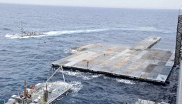 شاهد- أول صور جوية لرصيف غزة العائم بعد ربطه بالشاطئ