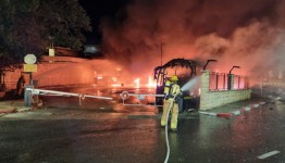 بالفيديو: اندلاع حريق هائل في حافلات بالمحطة المركزية في صفد