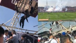 فيديو صادم.. لحظة انهيار مدرج ملعب في تشيلي على المشجعين