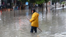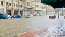 مياه الأمطار تغرق شارع الأمن العام وسط مدينة غزة